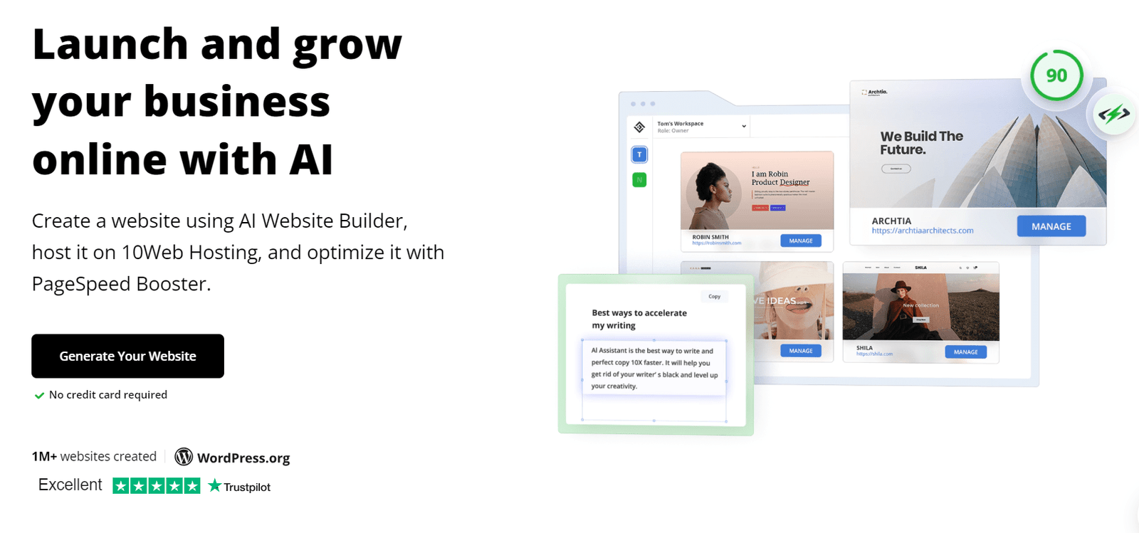 10Web is an AI-driven platform that simplifies website creation, management, and optimization. It offers an AI Website Builder to create websites with auto-generated content and images, and hosts them on 10Web’s managed hosting powered by Google Cloud. This platform also includes tools for e-commerce, SEO, and website performance enhancement.