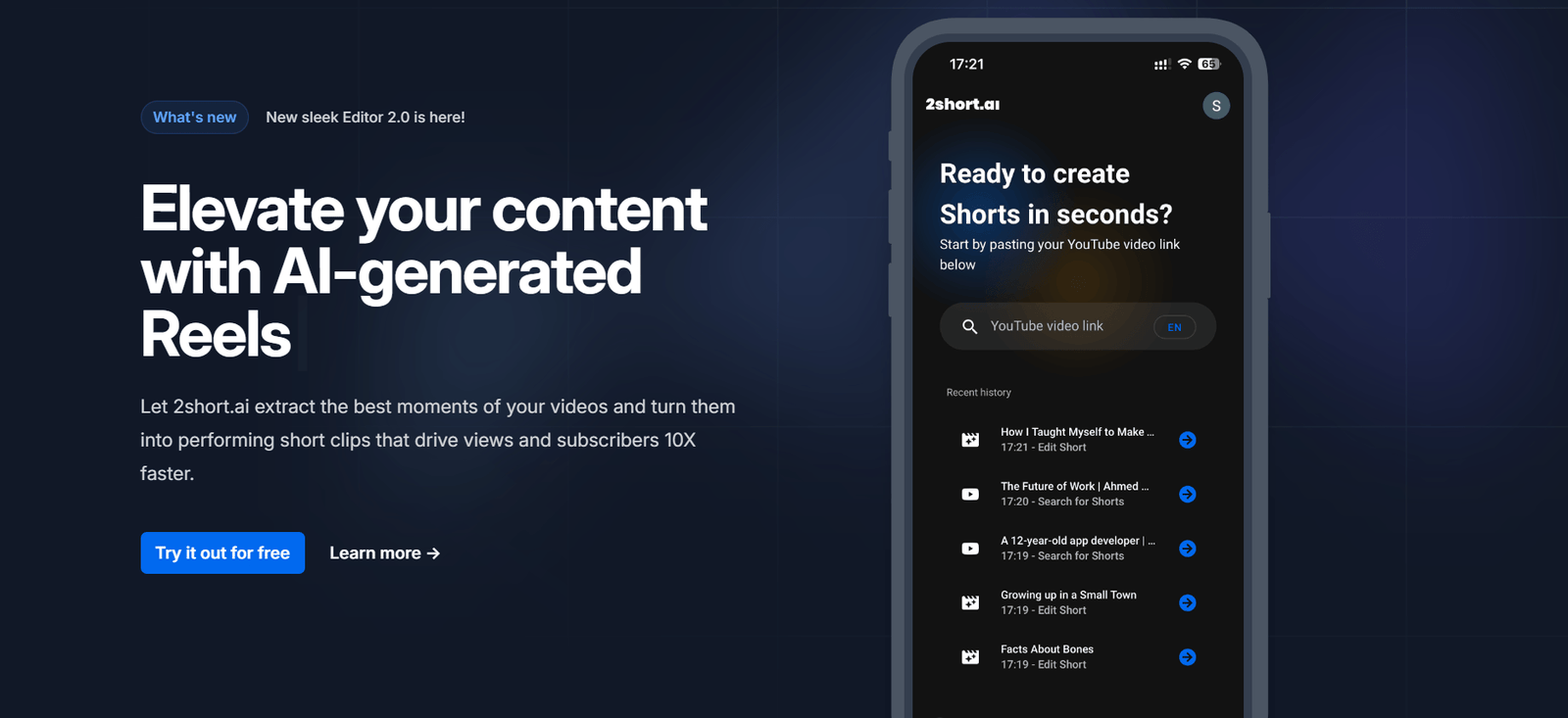 2short.ai is an innovative AI tool designed to transform long-form YouTube content into engaging short clips, enhancing views and subscriber growth rapidly. This tool simplifies the content creation process by allowing users to paste their YouTube video links into the platform, which then uses AI to generate short, captivating clips. Ideal for various video types including podcasts, educational videos, and product reviews, 2short.ai helps creators maximize their content’s reach effortlessly.