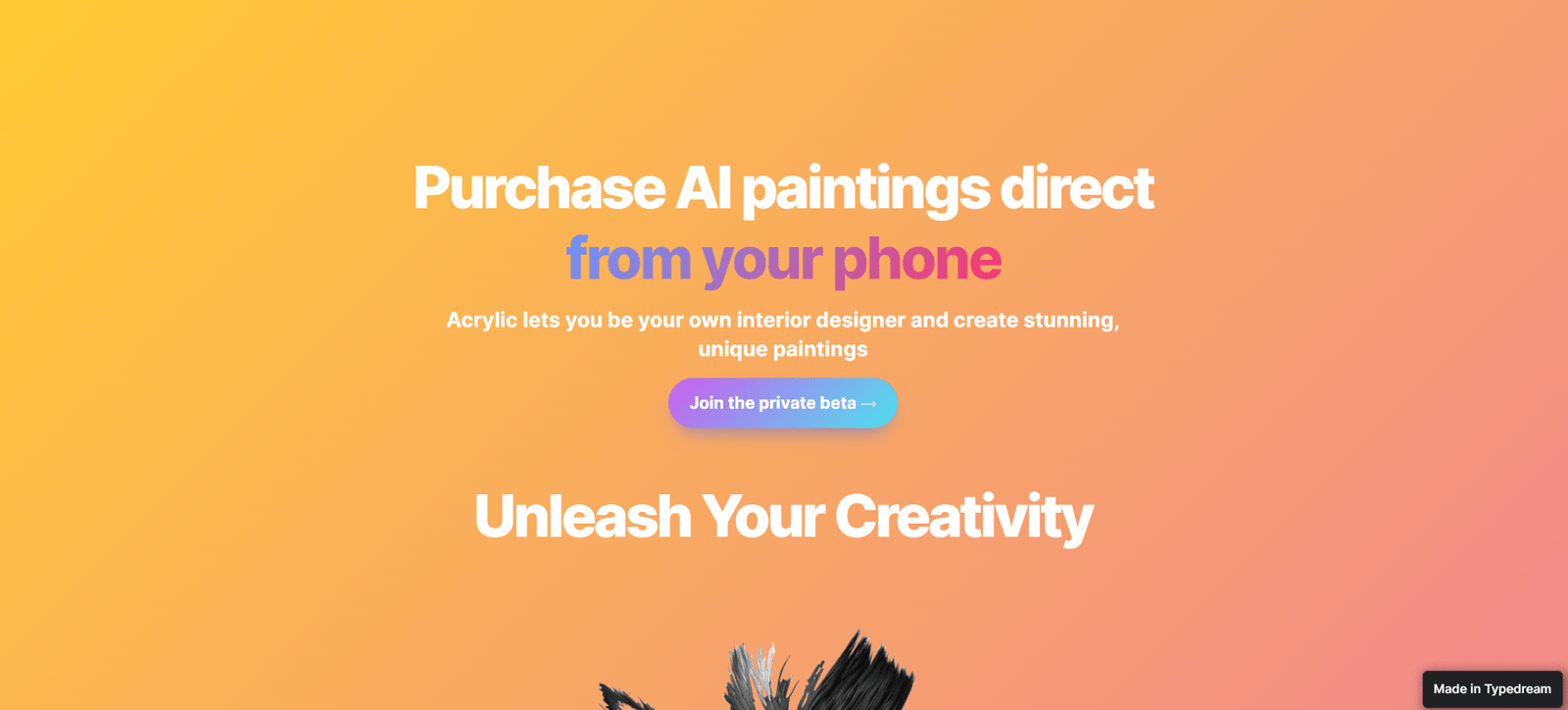 Acrylic is an innovative AI tool that empowers users to personalize their home decor with unique, custom-made paintings. Utilizing artificial intelligence, Acrylic allows users to create stunning artwork that can be previewed in their own homes using augmented reality. This tool is designed to make interior design more accessible and personalized, offering an easy-to-use interface and seamless purchasing options.