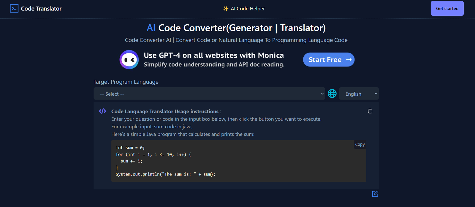 AI Code Convert is an AI-powered tool designed to simplify the process of converting code between various programming languages. By utilizing advanced AI technology, it offers seamless translation of code, making development more efficient and accessible. This tool is particularly useful for developers who work with multiple programming languages and need quick, reliable translations.