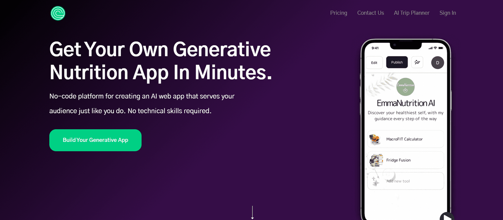 The platform’s primary feature is the Generative Nutrition App, which automates nutrition services, provides personalized meal plans, and recognizes ingredients from fridge photos. It aims to boost productivity by offering customized services to every user and generate income through monetization options.