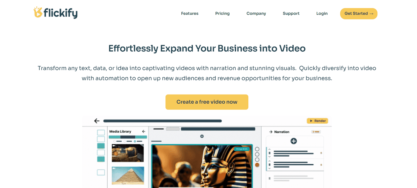 Flickify is an AI-powered tool that transforms text, articles, blogs, and data into professional-quality videos effortlessly. Designed for businesses looking to expand into video content without the need for special training or software, Flickify automates the video creation process, making it fast and efficient. This tool enables users to leverage existing high-ranking content by converting it into videos, thus enhancing visibility in Google’s video searches and carousels. With Flickify, businesses can diversify their content strategy, tap into new audiences, and unlock new revenue streams.