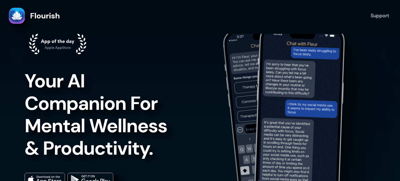 Flourish is an innovative mental wellness platform designed to provide users with an AI companion named Fleur. This AI companion engages in meaningful conversations, offering support grounded in psychology to help users manage their mental health and productivity. Flourish aims to make quality mental health support accessible to everyone through concise mental health assessments and scientifically-backed stress relief tools.