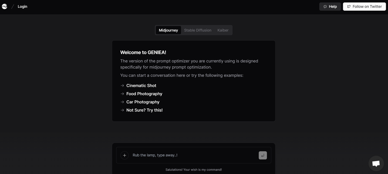 Geniea is an advanced AI tool designed to optimize prompts for various AI models, including Midjourney, Stable Diffusion, and Kaiber. It aims to enhance the efficiency and effectiveness of AI-generated content, making it suitable for creative professionals and enthusiasts alike. The tool leverages cutting-edge algorithms to refine and optimize prompts, ensuring high-quality outputs consistently.