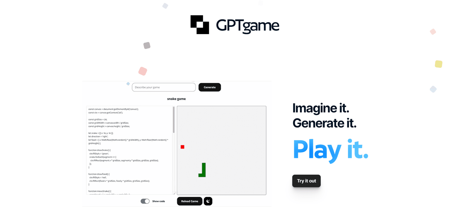 GPTGame is an innovative platform that empowers users to generate fun, small JavaScript games instantly with GPT technology. The primary goal of GPTGame is to enable anyone, even those without coding skills, to create and play games easily. Users simply provide a brief description of their game concept, and GPTGame takes care of the rest, generating playable game code that can be further customized.