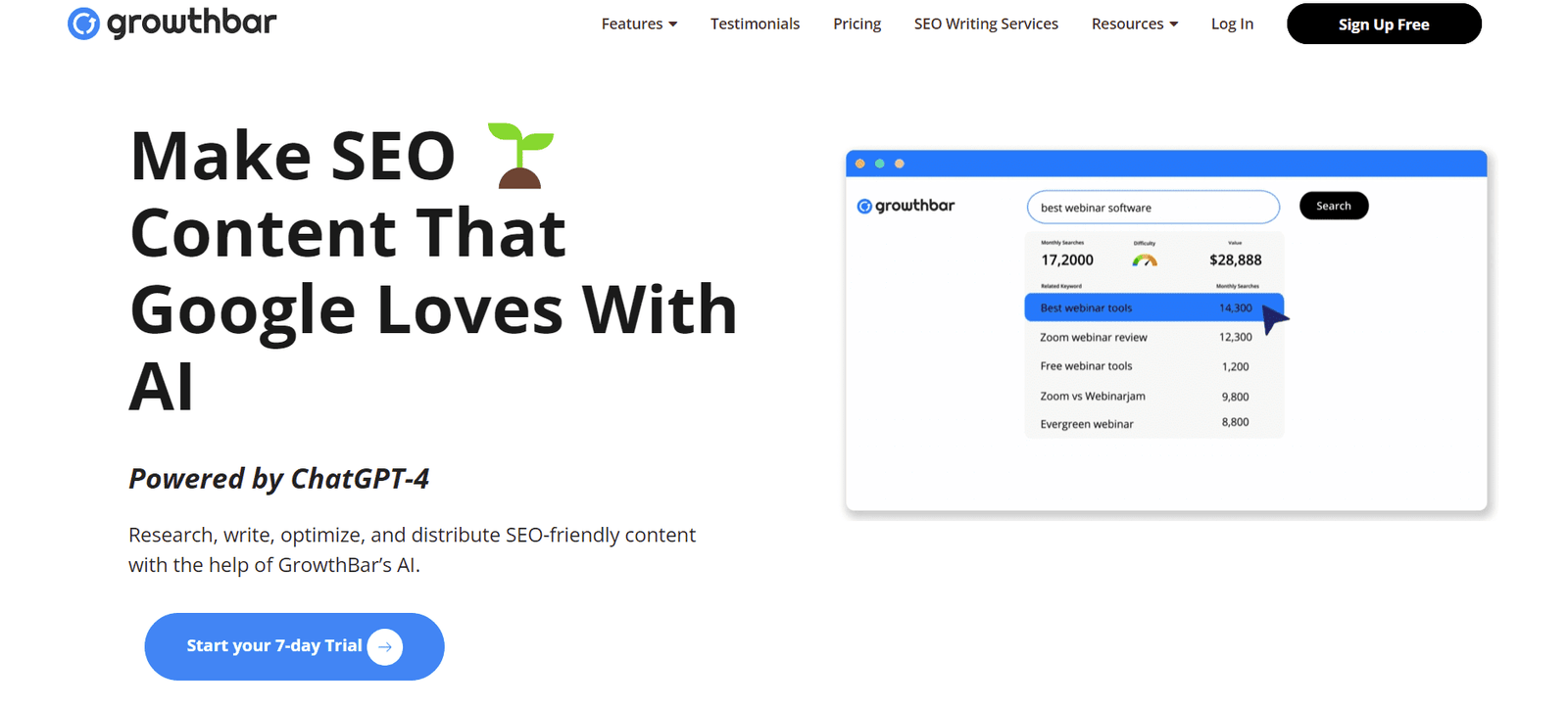 GrowthBar offers a suite of AI-driven features that include content generation, keyword research, and competitive analysis. Its intuitive interface and robust functionalities make it a preferred choice for thousands of marketers, bloggers, and agencies aiming to dominate their niches.