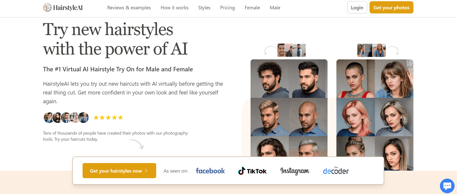HairstyleAI is an innovative AI-powered tool that allows users to virtually try on different hairstyles before committing to an actual haircut. This tool is designed for both male and female haircuts, offering a seamless experience to see which styles suit you best. By using advanced AI technology, HairstyleAI helps users feel more confident in their appearance and make informed decisions about their hairstyles.