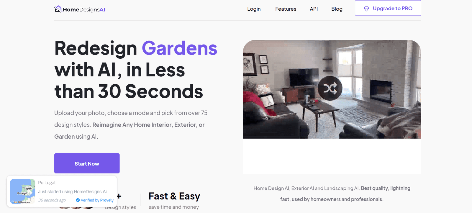 HomeDesigns.AI is a powerful online tool that leverages artificial intelligence to transform and redesign interior and exterior spaces. Whether you want to redesign your living room, garden, or entire house, this tool can generate new design ideas in under 30 seconds. With over 75 different design styles, it caters to both personal and professional use, helping homeowners and designers visualize and implement their creative concepts quickly and efficiently.