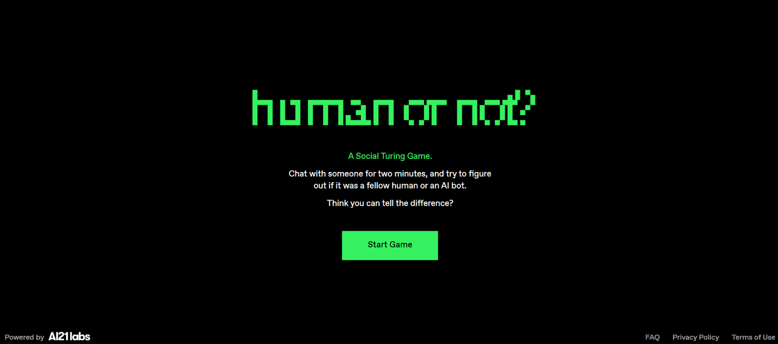 Human or Not is an interactive social Turing game where users chat with someone for two minutes and try to determine if they are conversing with a human or an AI bot. The challenge is to see if you can distinguish between human and artificial intelligence based solely on a short conversation. This engaging game tests your ability to detect subtle nuances in communication that may reveal the nature of your chat partner.