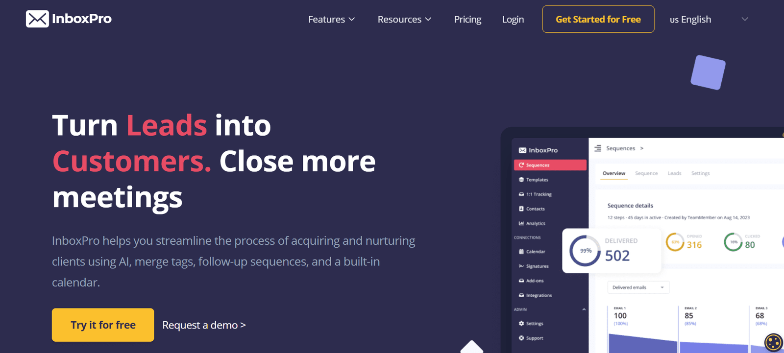 InboxPro’s key strengths lie in its ability to automate and personalize email communication. Users can set up follow-up sequences, use merge tags for personalized emails, and manage their schedules seamlessly with the built-in calendar. These features collectively contribute to a more efficient and predictable sales funnel.
