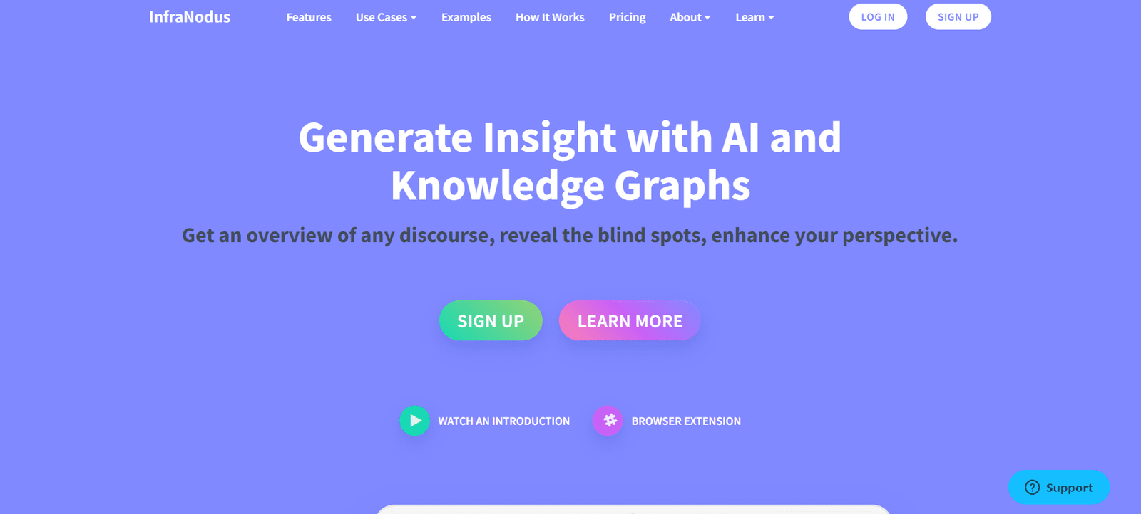 InfraNodus is an AI-powered tool that utilizes text network analysis and GPT-4 integration to generate insights from any text. By visualizing textual data as networks, it helps users uncover hidden connections and gaps in their ideas. This innovative approach enhances one’s understanding and perspective of various discourses, making it useful for personal and professional applications.