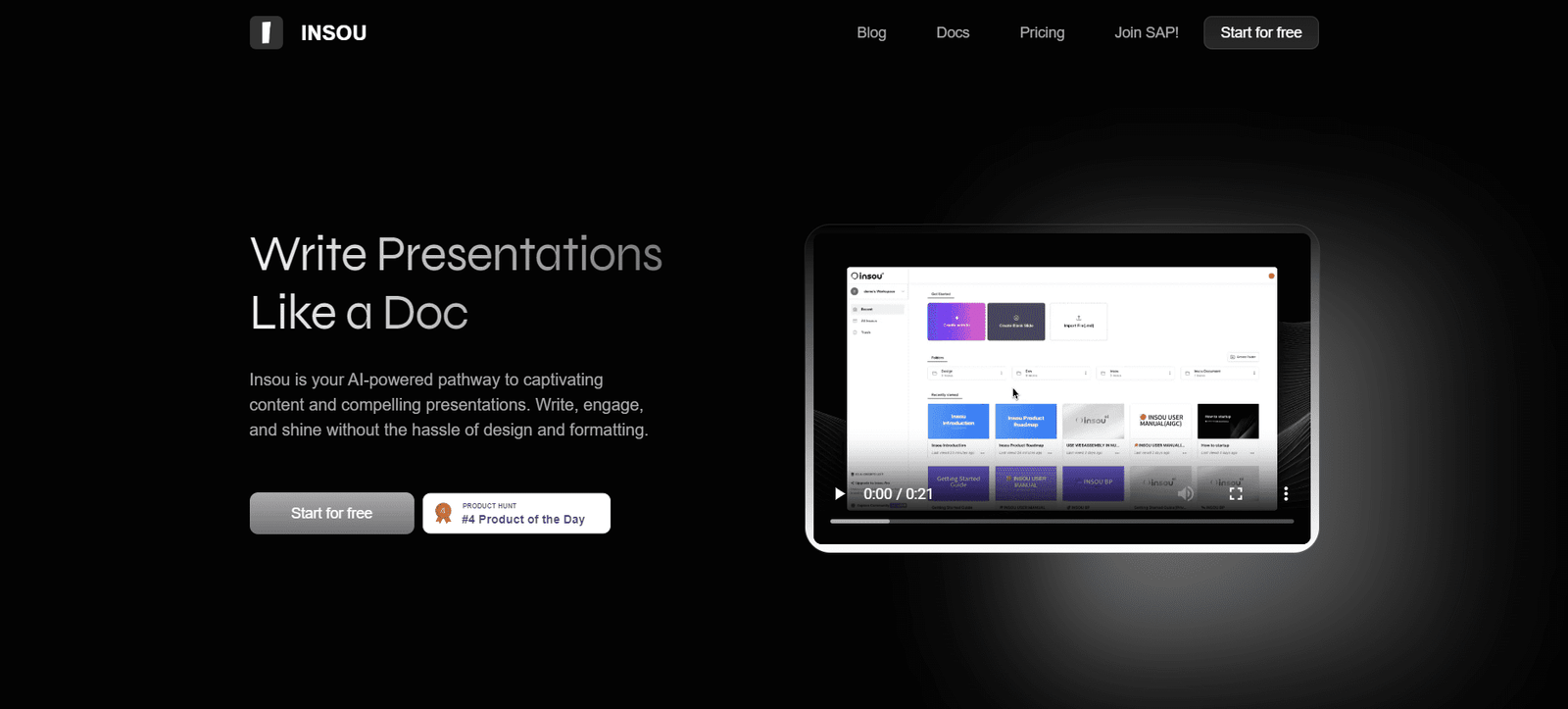 The platform uses a Notion-style markdown interface, making it user-friendly and accessible even for those without extensive technical knowledge. By leveraging advanced AI, Insou provides real-time guidance and enhancement suggestions, ensuring that presentations are not only visually appealing but also engaging and effective.