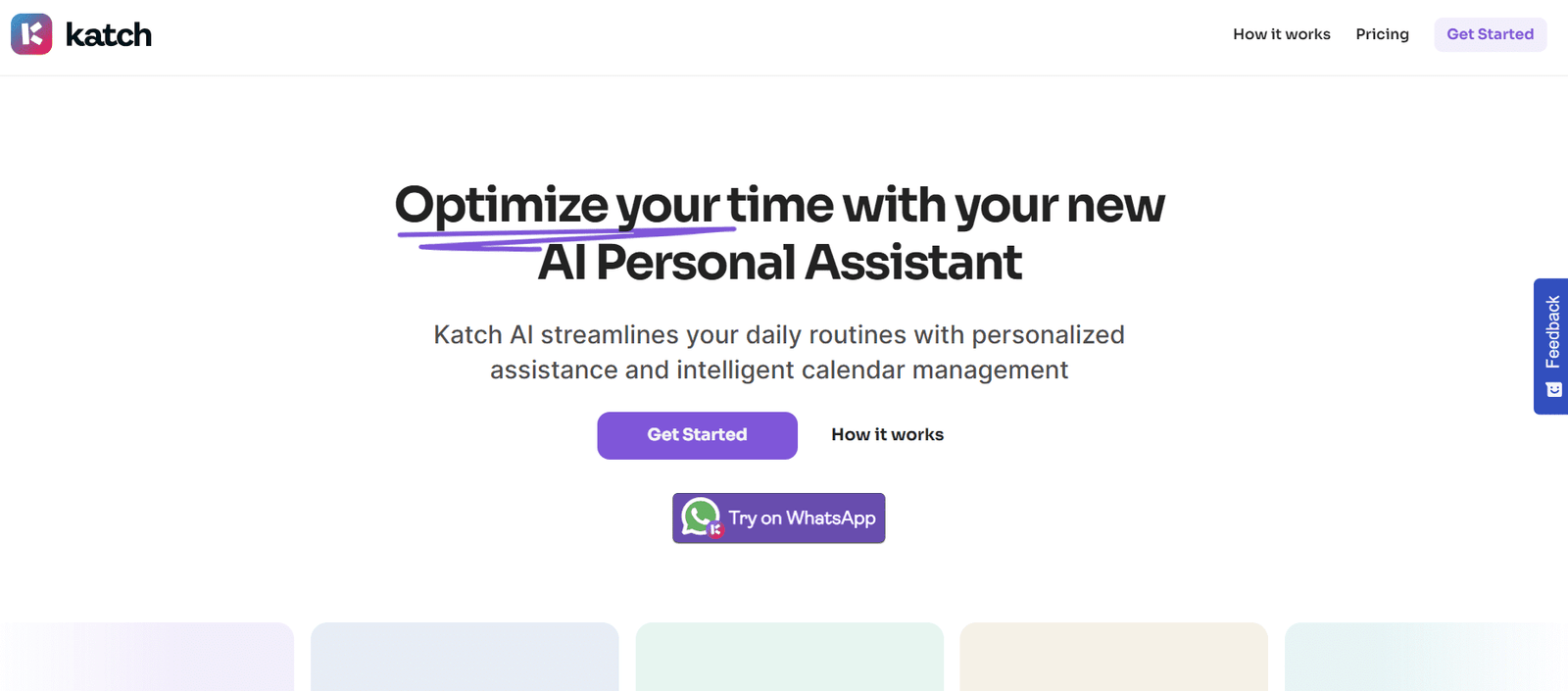 Katch is an AI-powered personal assistant designed to streamline your scheduling needs. It integrates seamlessly with your email or WhatsApp, allowing you to schedule, reschedule, and manage your meetings efficiently. Whether you are a busy executive, freelancer, or consultant, Katch saves you valuable time by automating the process of finding suitable meeting times and sending out invites.