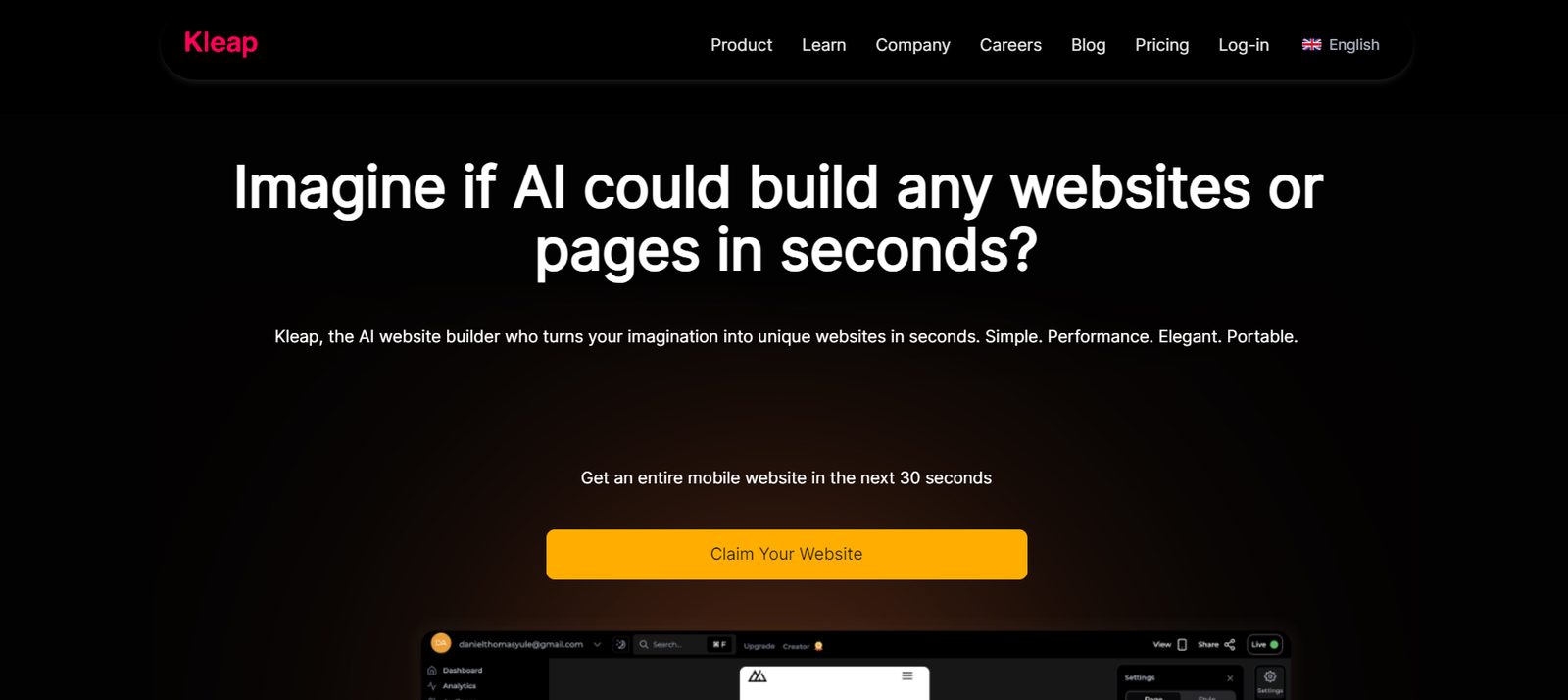 Kleap is an advanced AI website generator designed to create unique, visually appealing, and high-performing websites in seconds. It simplifies the website creation process by utilizing AI to do most of the work, allowing users to build websites using over 1,000 pre-built sections. Kleap ensures that websites are not only aesthetically pleasing but also optimized for performance and user experience. This tool is particularly beneficial for users who lack technical skills, as it provides a seamless and intuitive experience.