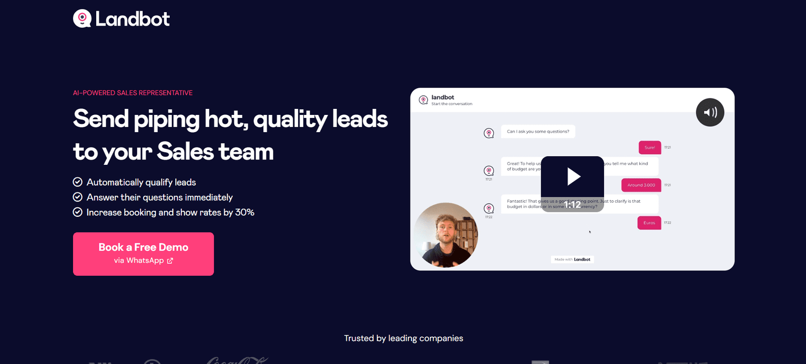 Landbot AI is a no-code chatbot platform designed to streamline customer interactions and automate lead generation. It seamlessly integrates with various channels such as websites, Facebook Messenger, and WhatsApp Business, making it a versatile tool for businesses aiming to enhance their sales processes. By leveraging AI, Landbot helps businesses qualify leads, answer customer queries in real-time, and increase engagement rates, thereby optimizing sales and customer service operations.