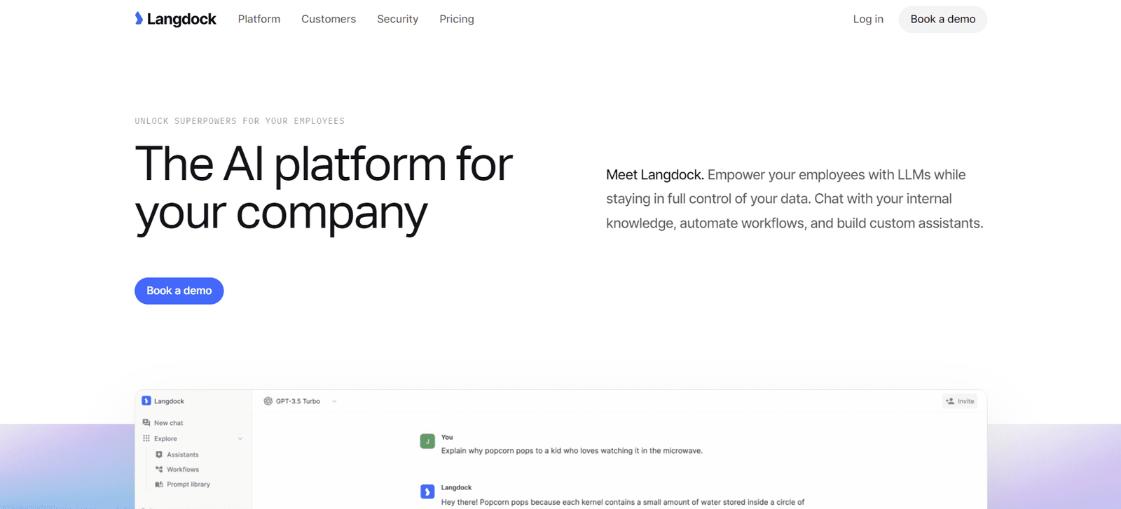 Langdock is an AI platform designed to enhance team productivity by integrating large language models (LLMs) with internal company data. It offers tools to automate workflows, build custom assistants, and maintain robust data security. The platform is built for enterprise scale, ensuring user data remains safe and private. Langdock supports collaboration, making it suitable for global enterprises and startups alike.