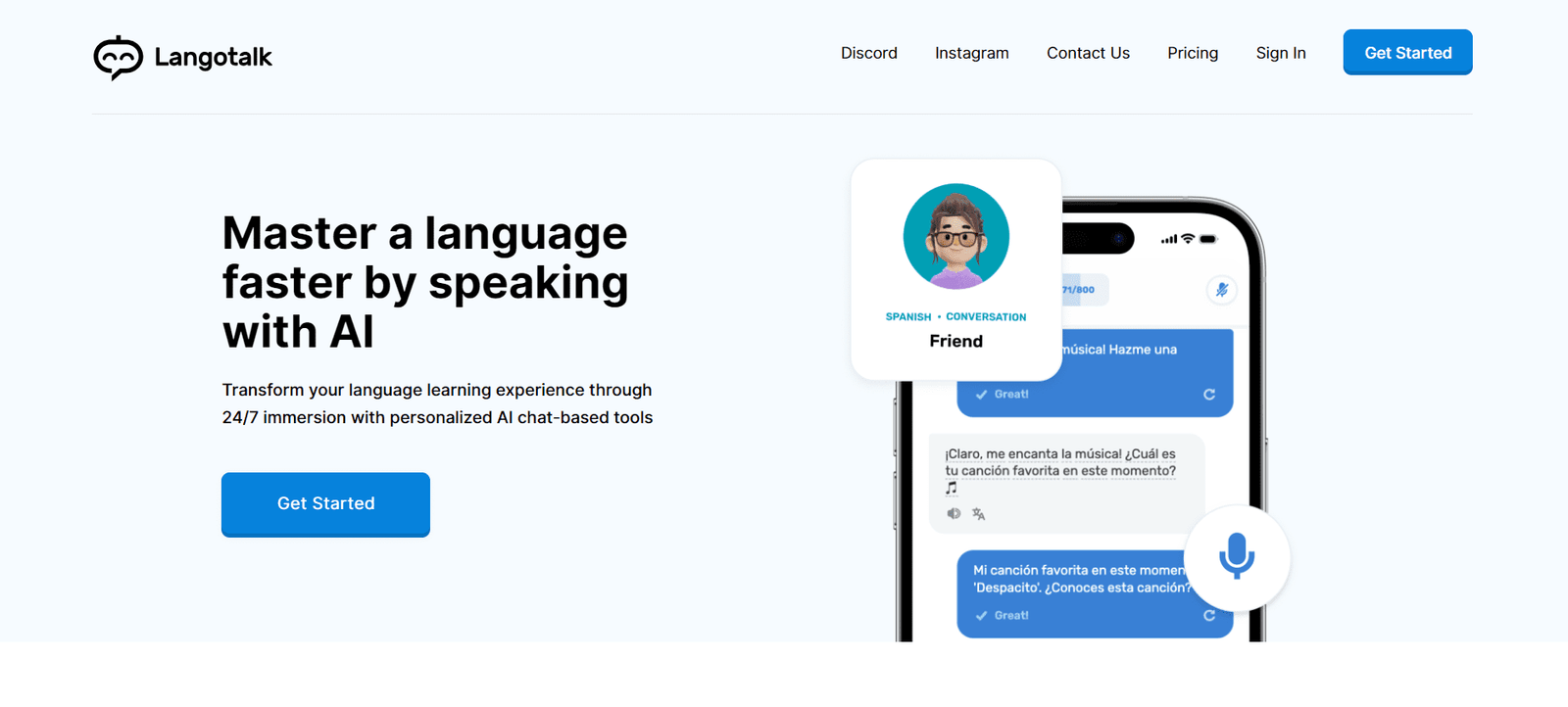 LangoTalk is an innovative AI-driven language learning tool designed to help users achieve fluency faster by immersing them in natural conversational practice. The platform allows learners to interact with various AI tutors, tailored to their personal interests and learning styles, making language learning more engaging and effective. With instant feedback and a variety of lesson types, LangoTalk provides a comprehensive approach to language acquisition, all from the comfort of your home.