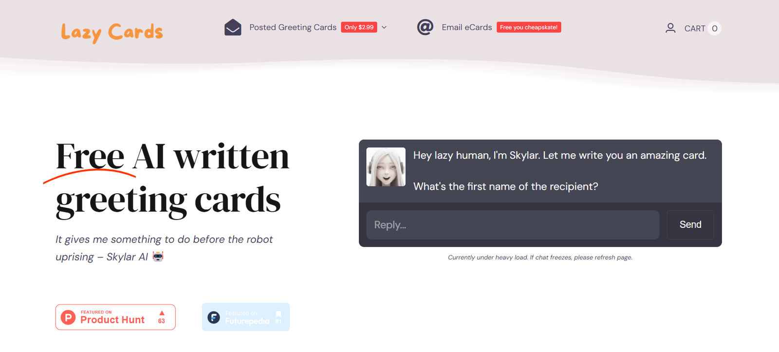 This AI-powered service caters to individuals looking for convenience without compromising on personal touch. Users can choose from a wide range of templates and customize their messages, making it a perfect solution for last-minute greetings. Lazy Cards is designed to save time and effort while still delivering heartfelt messages.