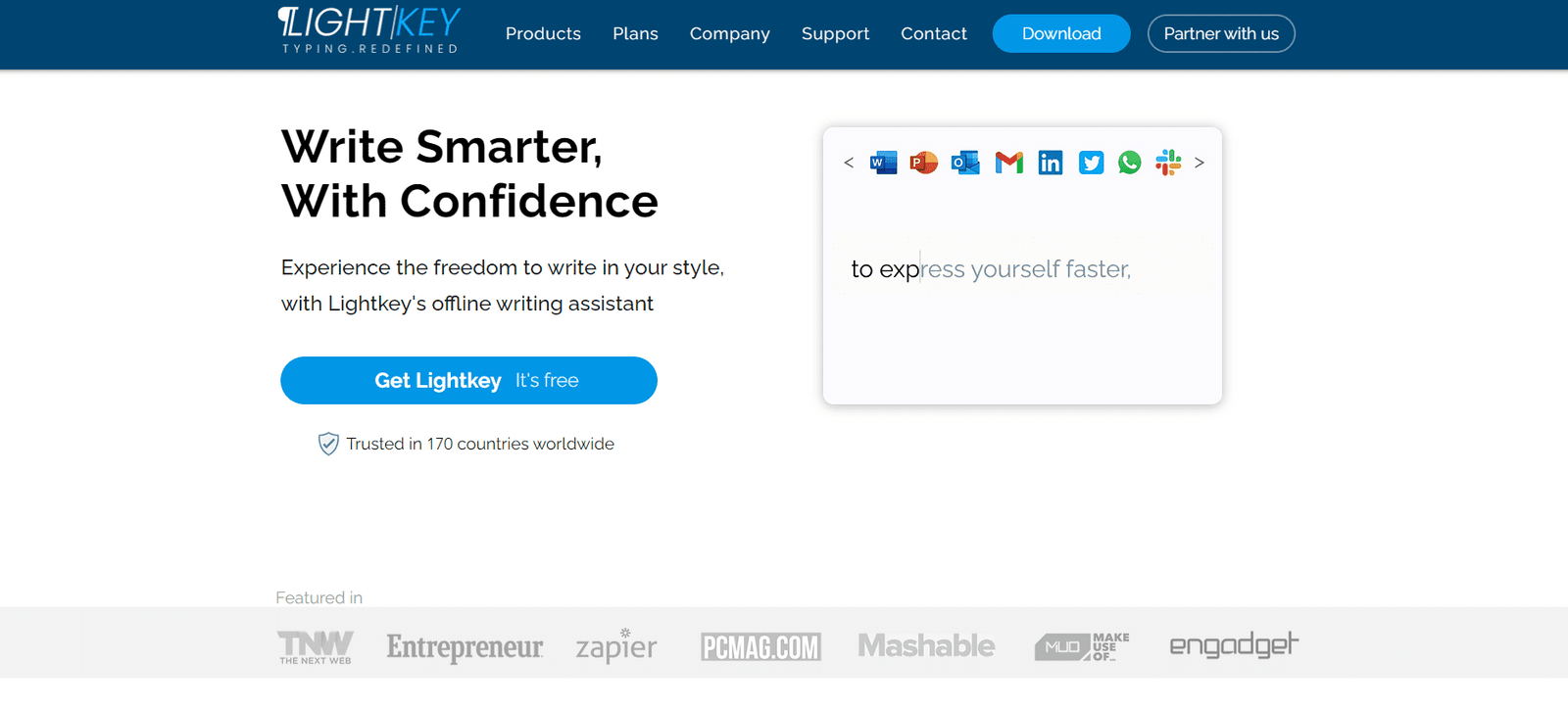 Lightkey is an AI-powered text prediction software designed to enhance your typing experience. Trusted in 170 countries, Lightkey learns your typing patterns to predict up to 18 words, including punctuation marks, helping you compose content faster. This writing assistant supports offline usage, ensuring privacy and security while improving your productivity across various platforms like Microsoft Office, Chrome, and Edge.