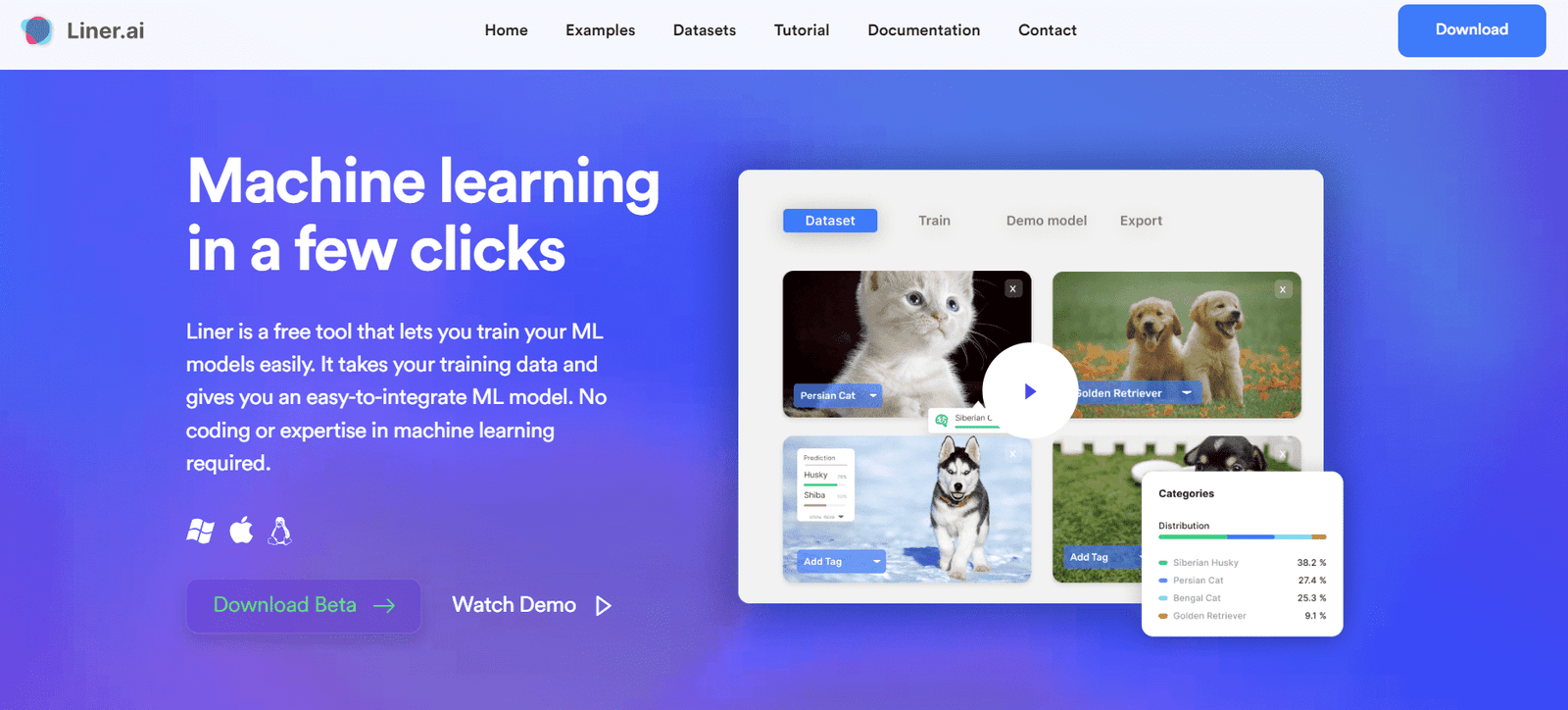 Liner.ai supports various machine learning types, including image classification, text classification, audio classification, video classification, object detection, and image segmentation. This versatility makes it suitable for a wide range of applications and industries, from tech startups to established enterprises.