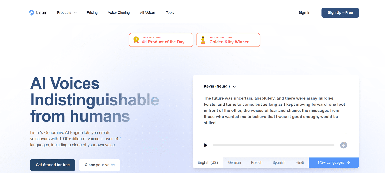 Listnr is an advanced AI voice generator and voiceover tool that leverages state-of-the-art technology to create realistic and natural-sounding voices. With over 1000 voices in 142 languages, including the ability to clone your own voice, Listnr caters to a wide range of content needs. It is trusted by over 1,000,000 users for its high-quality outputs in creating engaging voiceovers for videos, podcasts, audiobooks, and more.
