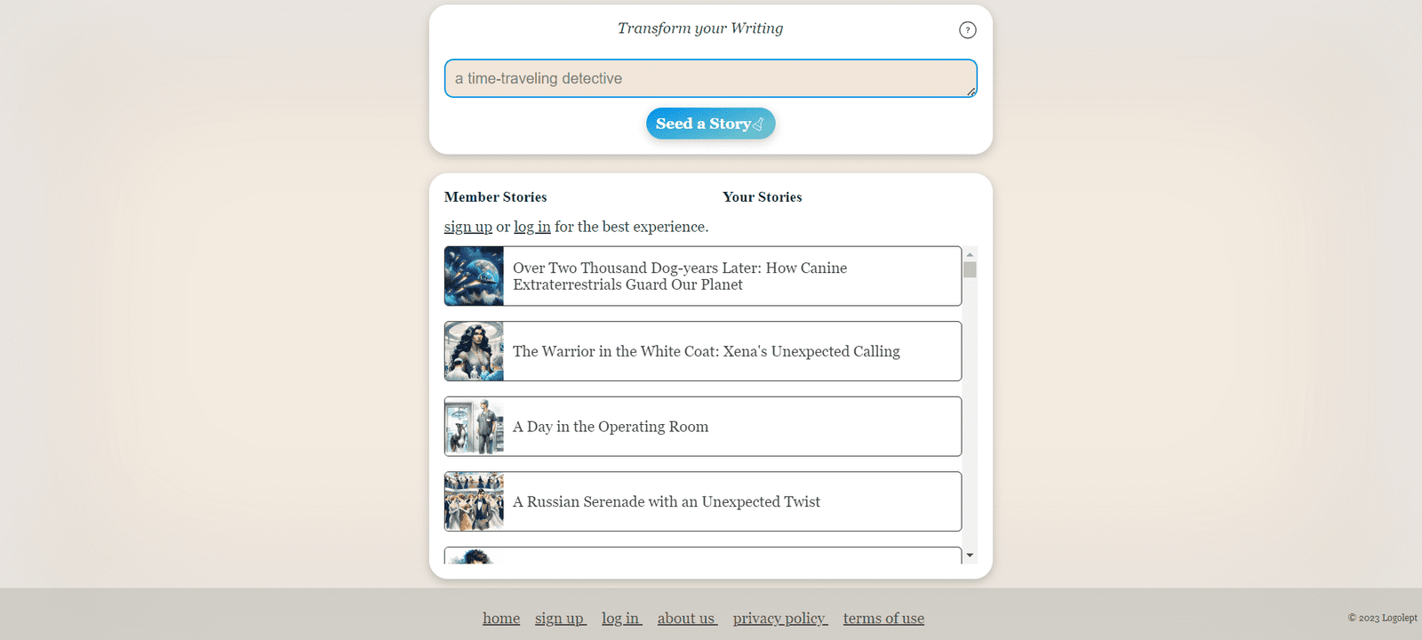 Logolept is an innovative AI-powered writing tool designed to transform your writing experience. By seeding your story with a prompt, Logolept helps writers generate creative and engaging content effortlessly. It serves as a digital companion for authors, enabling them to bring their stories to life with the aid of artificial intelligence.