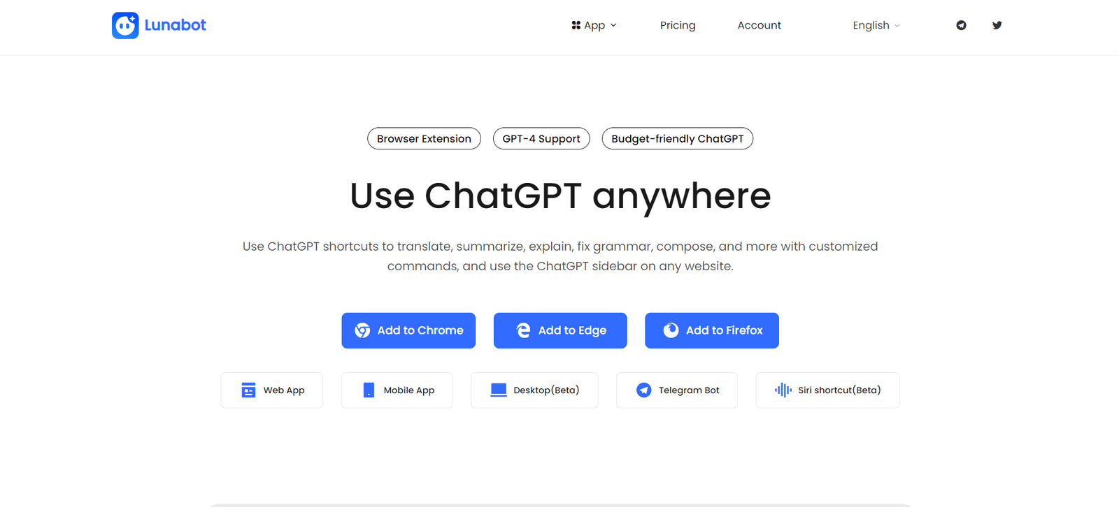 Lunabot is a versatile AI assistant designed to enhance your productivity on any webpage without the need for an API key or a ChatGPT account. By leveraging GPT-4 support, Lunabot provides a range of functionalities including text summarization, translation, grammar correction, and more, directly from your browser. This tool integrates seamlessly with multiple platforms, including Telegram and Siri, offering a comprehensive AI experience.