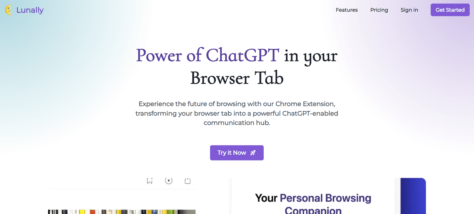 Lunally.ai is a cutting-edge AI-powered tool designed to enhance your browsing experience. With its integration as a Chrome extension, Lunally.ai transforms your browser tab into a dynamic communication hub powered by ChatGPT. This innovative tool allows users to interact seamlessly with any web page, enabling instant responses to queries, summarizing content, and generating new ideas and concepts based on the web page content.