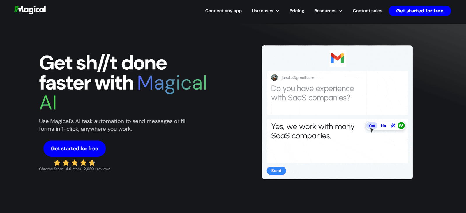 Magical AI is an innovative tool designed to automate tasks and streamline communication across various platforms. By leveraging the power of AI, it allows users to send messages or fill forms with a single click, making it easier to manage emails, social media interactions, and customer support queries. This tool is particularly useful for professionals who deal with high volumes of repetitive tasks, enhancing productivity and efficiency.