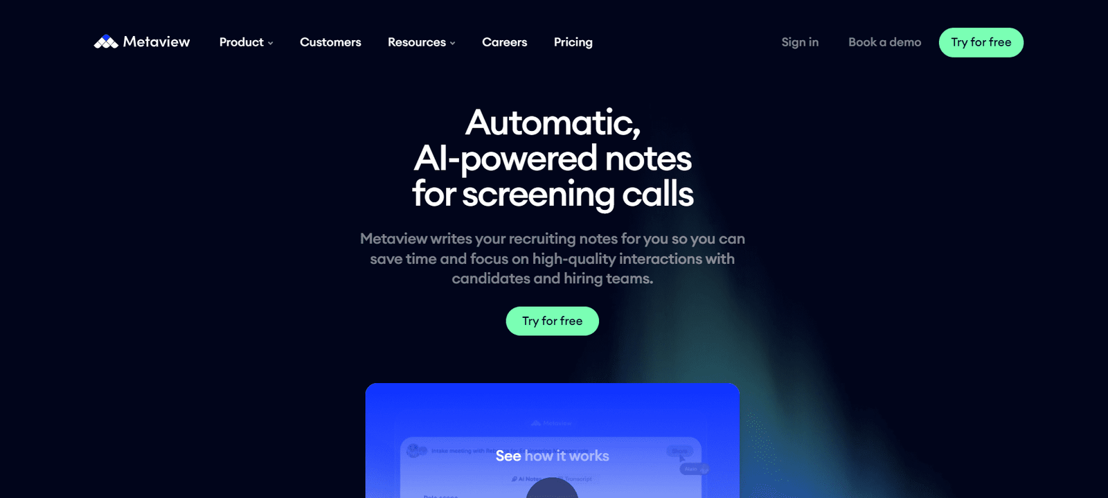 Metaview is an AI-powered tool designed to automate note-taking for recruiters and interviewers. By leveraging advanced AI technology, Metaview captures detailed notes from interviews, allowing recruiters to focus on engaging with candidates rather than on manual documentation. This tool is trusted by a diverse range of companies, from startups to large enterprises, to enhance the efficiency and quality of their hiring processes.