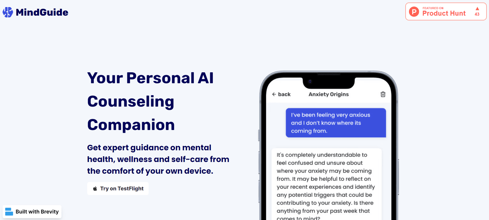 MindGuide is an AI-powered tool designed to provide expert guidance on mental health, wellness, and self-care. It offers users personalized counseling and advice from the comfort of their own devices. With its advanced AI capabilities, MindGuide aims to make mental health support more accessible and convenient for everyone.