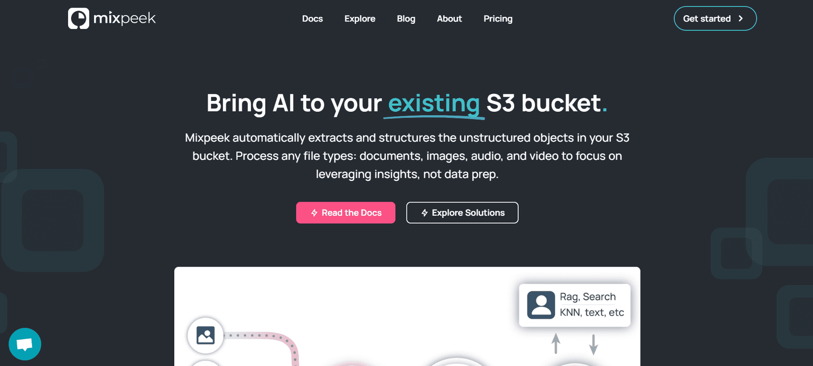 MixPeek is an AI-powered tool designed to bring intelligence to your existing S3 bucket by automatically extracting and structuring unstructured objects. It processes various file types, including documents, images, audio, and video, allowing you to focus on leveraging insights rather than data preparation. This tool helps organize the vast amount of data in your S3 bucket, ensuring your applications can concentrate on the essential tasks.