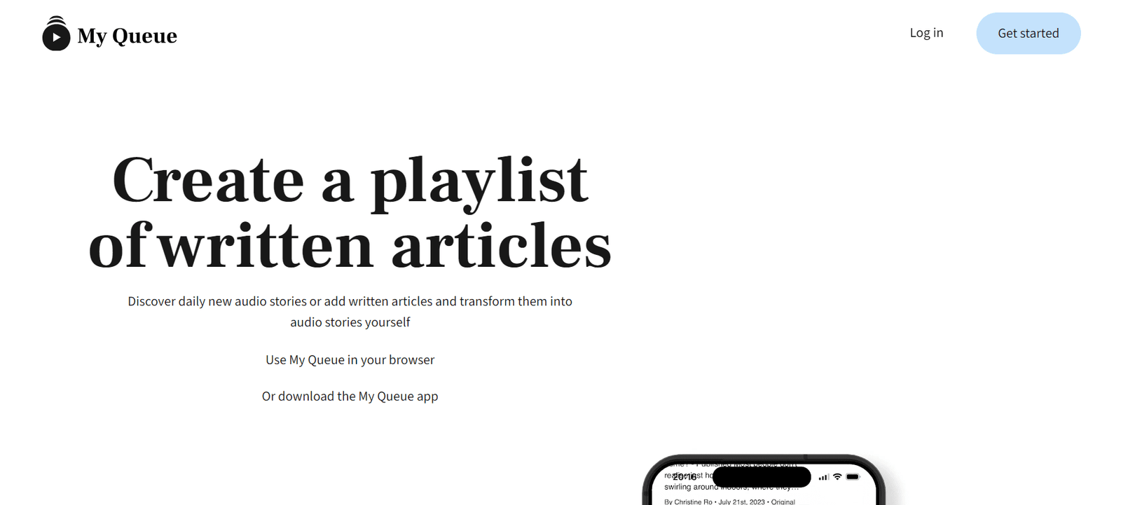 My Queue is an innovative AI-driven tool that transforms written articles into audio stories, making it easier for users to stay updated with the latest news while on the go. It supports content from major news platforms like The New York Times, Medium, BBC, The Guardian, CNN, and TechCrunch, allowing users to create personalized playlists of articles to listen to during their daily activities.