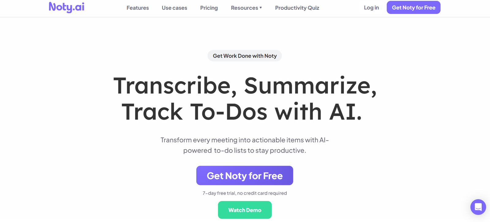 Noty.ai is a cutting-edge AI-driven tool designed to streamline workplace communication and enhance productivity. It specializes in transcribing meetings, generating summaries, and providing actionable takeaways. This tool is celebrated for its ability to save significant time by automating routine tasks, thus allowing professionals to focus on more critical aspects of their work.