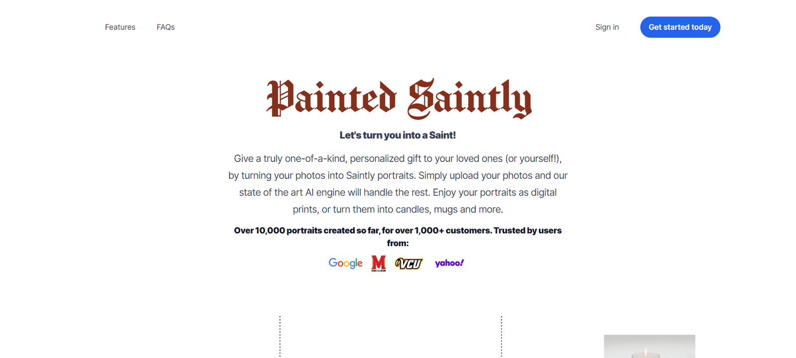 Painted Saintly is an innovative AI tool designed to transform ordinary photos into personalized Saint portraits. This service allows users to create unique and custom-made artwork by simply uploading their photos. The process is user-friendly and efficient, providing digital prints that can also be turned into various physical items like candles, mugs, and more. Founded in New York City, Painted Saintly has already created over 10,000 portraits for more than 1,000 satisfied customers.