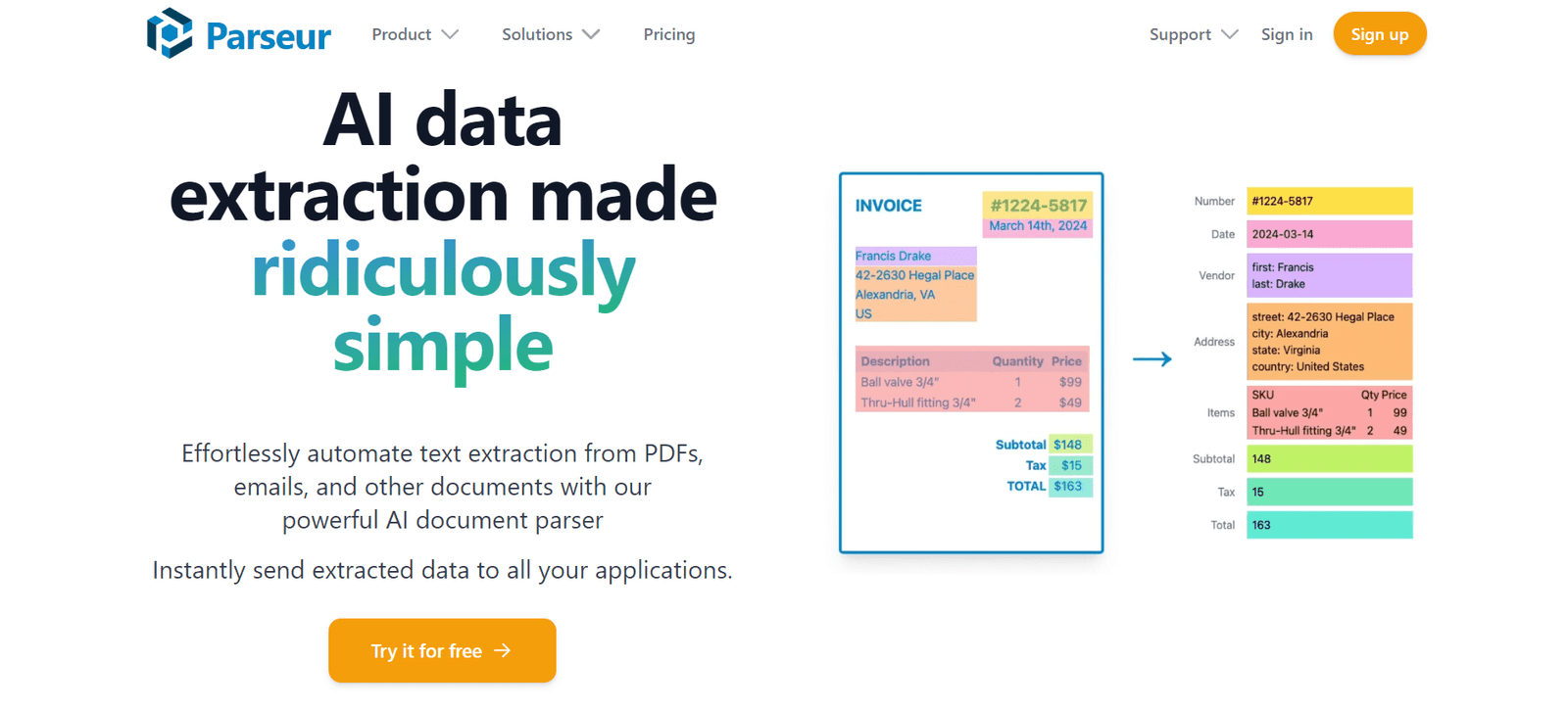 The software is user-friendly, requiring no technical skills or complex data extraction rules. Its powerful AI engine adapts to different document layouts, making it highly versatile. Parseur offers a range of predefined datasets and customizable fields, ensuring it meets specific business needs efficiently.