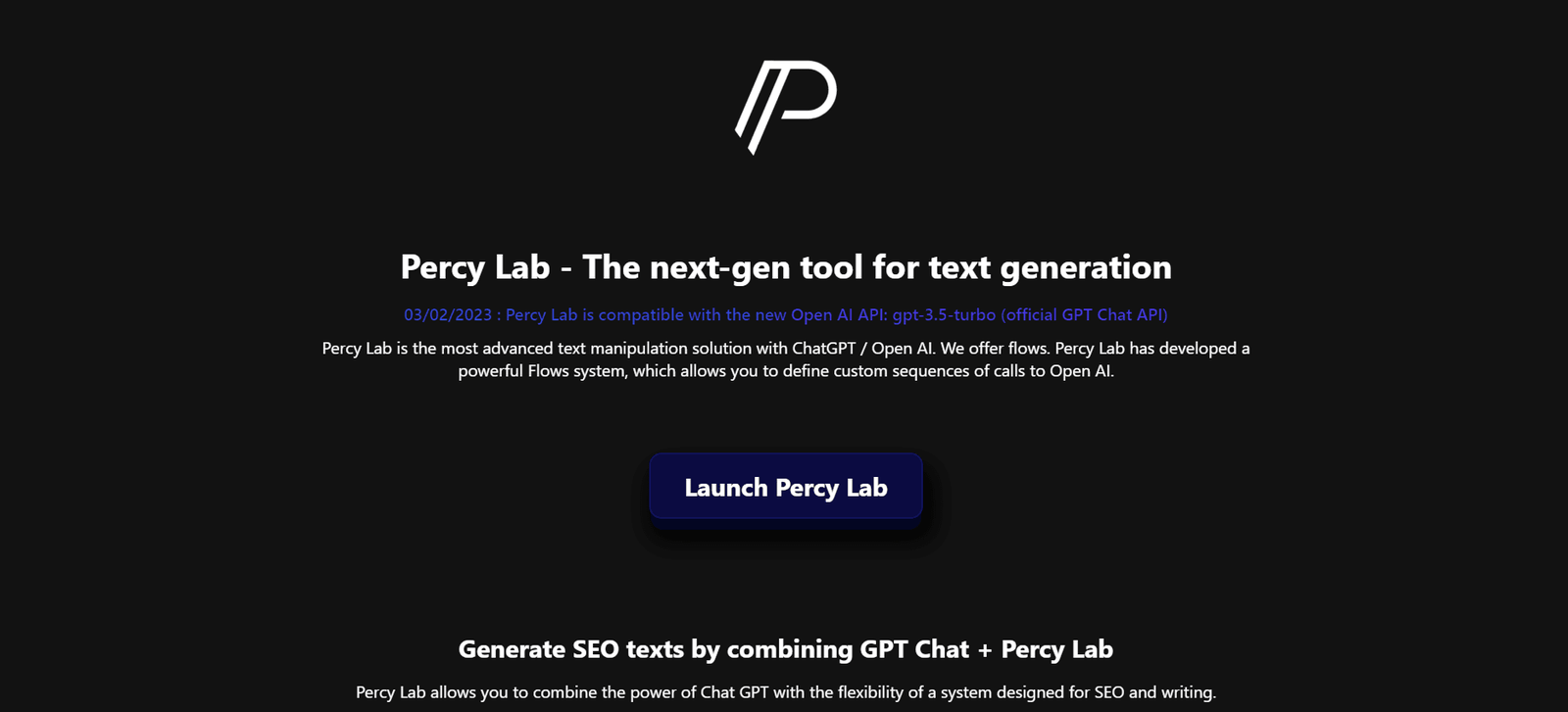 Percy Lab is a next-generation tool designed for advanced text manipulation, leveraging the power of ChatGPT and Open AI’s gpt-3.5-turbo. This tool excels in generating high-quality SEO-optimized content efficiently, combining the capabilities of AI with user-defined flows for precise and effective text generation.