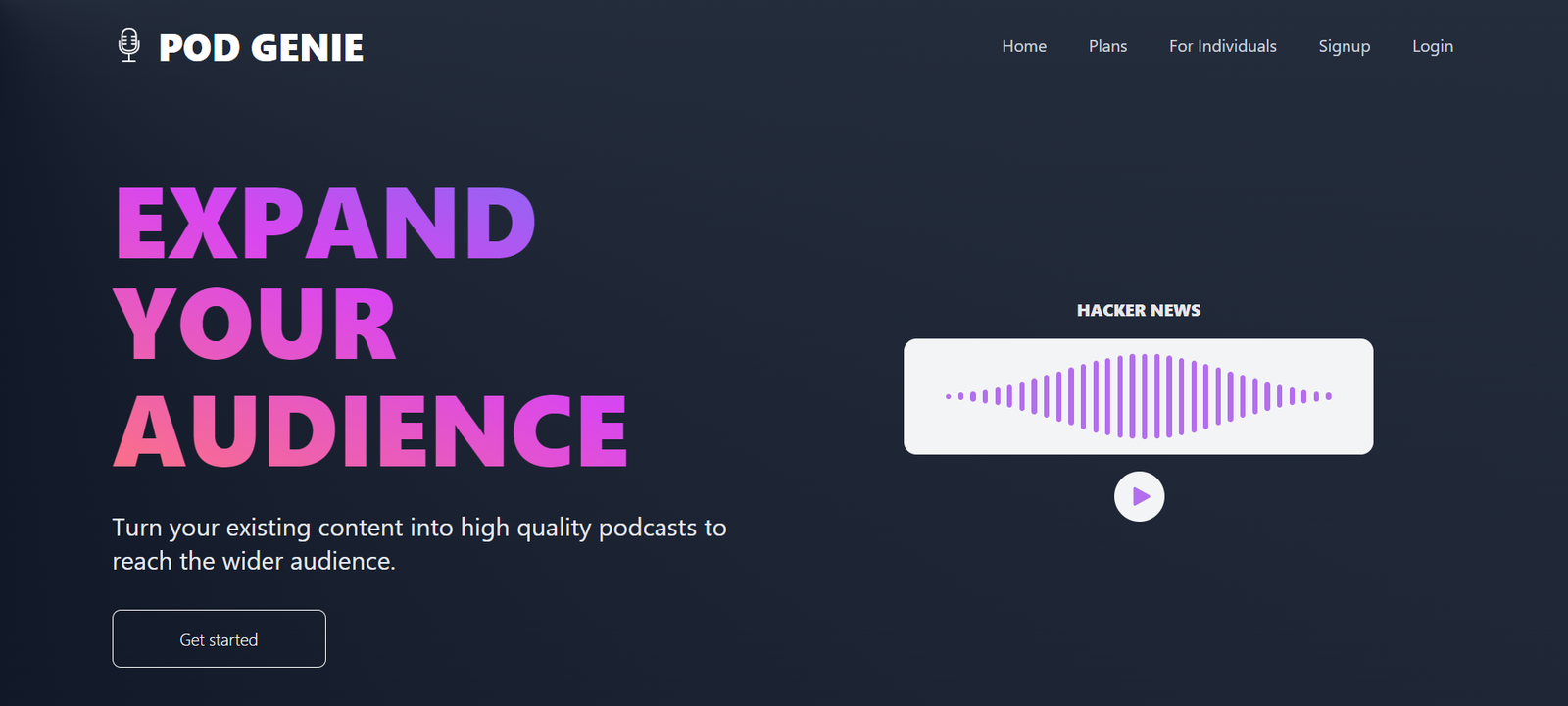 Pod Genie is an AI-powered tool designed to transform your existing written content into high-quality podcast episodes effortlessly. By leveraging advanced artificial intelligence, it automates the entire podcast creation process, making it accessible to anyone without the need for specialized equipment or recording studios. This tool is perfect for repurposing articles, blog posts, and other written content into engaging audio material, thereby maximizing the utility of your published work.