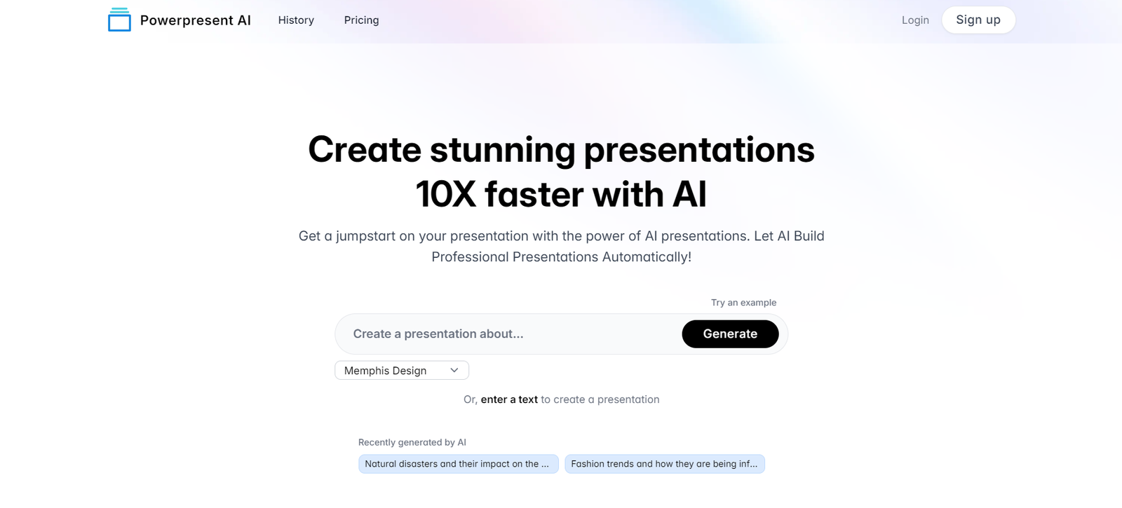 Powerpresent AI is a cutting-edge tool designed to revolutionize the way presentations are created. By leveraging advanced artificial intelligence, this platform enables users to generate visually appealing presentations 10 times faster than traditional methods. Whether for business, education, or personal use, Powerpresent AI simplifies the process by automating design and content generation, ensuring professional-quality results without the need for design expertise.