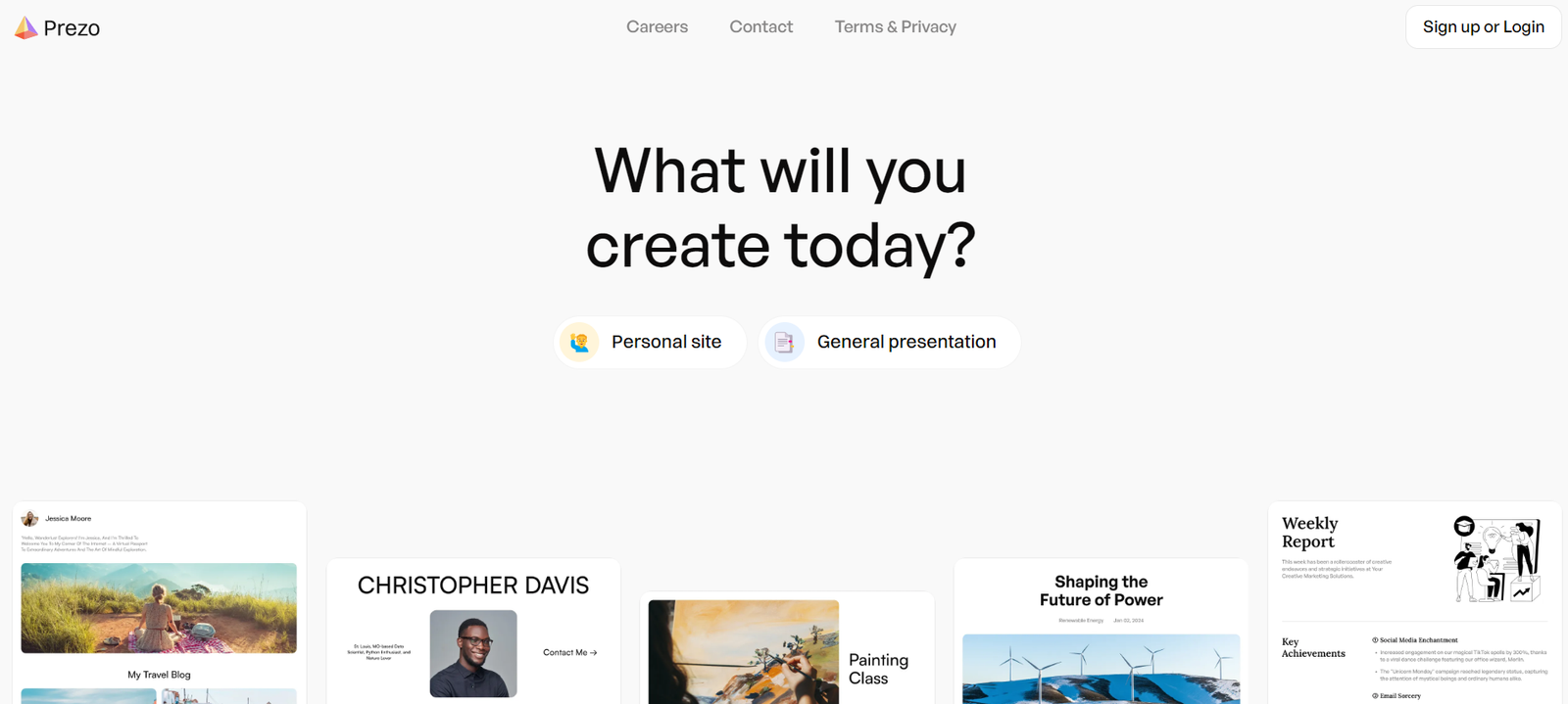 Prezo.ai is a powerful AI tool designed to streamline the creation of presentations, documents, and websites. Leveraging advanced artificial intelligence, Prezo.ai enables users to generate professional-grade content with ease. This tool is perfect for professionals, educators, and students looking to enhance their productivity.