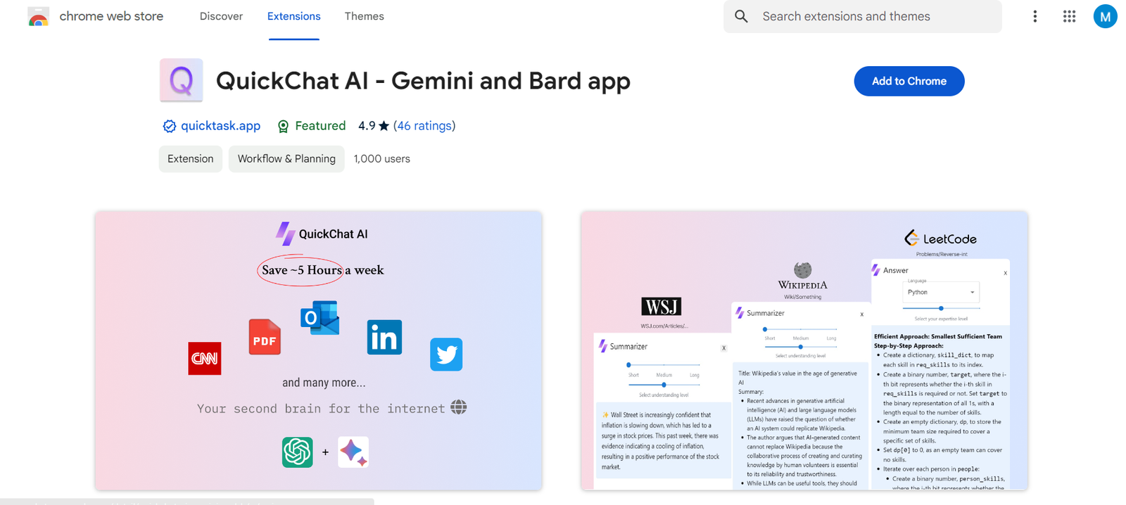 QuickChat AI is an innovative tool designed to enhance productivity by automating repetitive tasks. It offers seamless integration with popular AI platforms like ChatGPT and Bard, allowing users to access and utilize these tools directly from their browsers. With QuickChat AI, users can streamline their workflows, save valuable information, and automate routine processes efficiently.