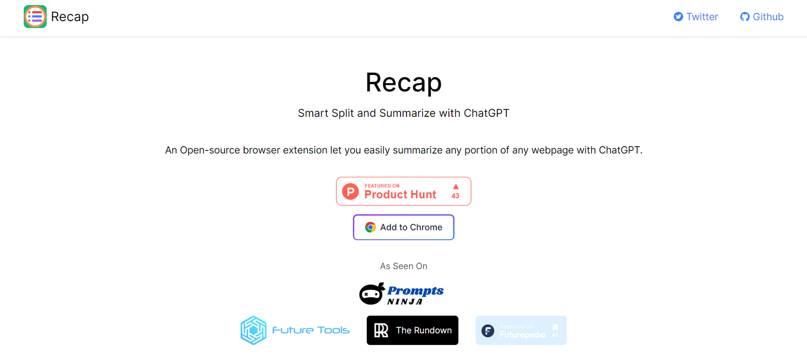 RecapExt is an open-source browser extension designed to effortlessly summarize any portion of a webpage using ChatGPT. This tool enhances productivity by allowing users to extract essential information quickly. It integrates seamlessly into the browsing experience, making information retrieval more efficient and straightforward.