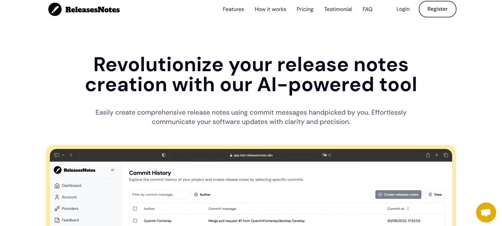 ReleasesNotes is an AI-powered tool designed to streamline the creation of release notes for software updates. By integrating with version control systems like GitHub, it allows developers to effortlessly compile comprehensive and clear release notes from commit messages. This tool is particularly beneficial for development teams looking to enhance productivity and communication.