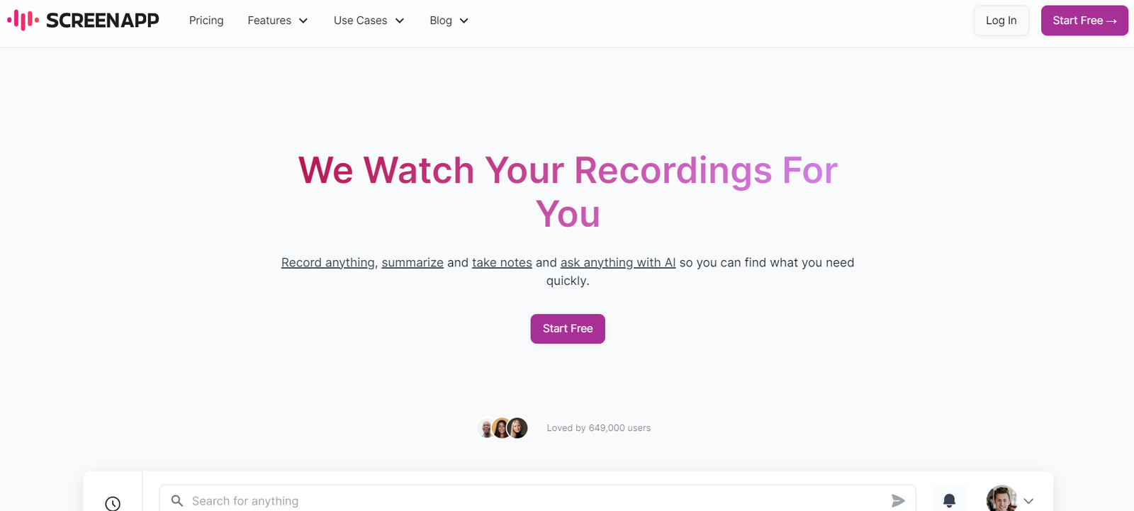 ScreenApp is an advanced AI tool designed to simplify the process of recording, summarizing, and managing video and audio content. It offers a range of features that enhance productivity by automating note-taking, summarization, and transcription. Users can capture their screen, voice, and webcam with just a click, making it an ideal solution for professionals and educators.