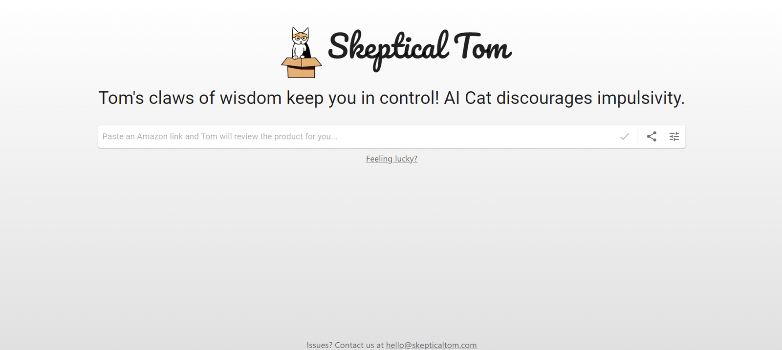 Skeptical Tom is an AI-powered tool designed to help users control impulsive buying habits. The tool features an AI cat, Tom, who uses wisdom and clever reminders to discourage impulsive purchases and promote mindful spending.