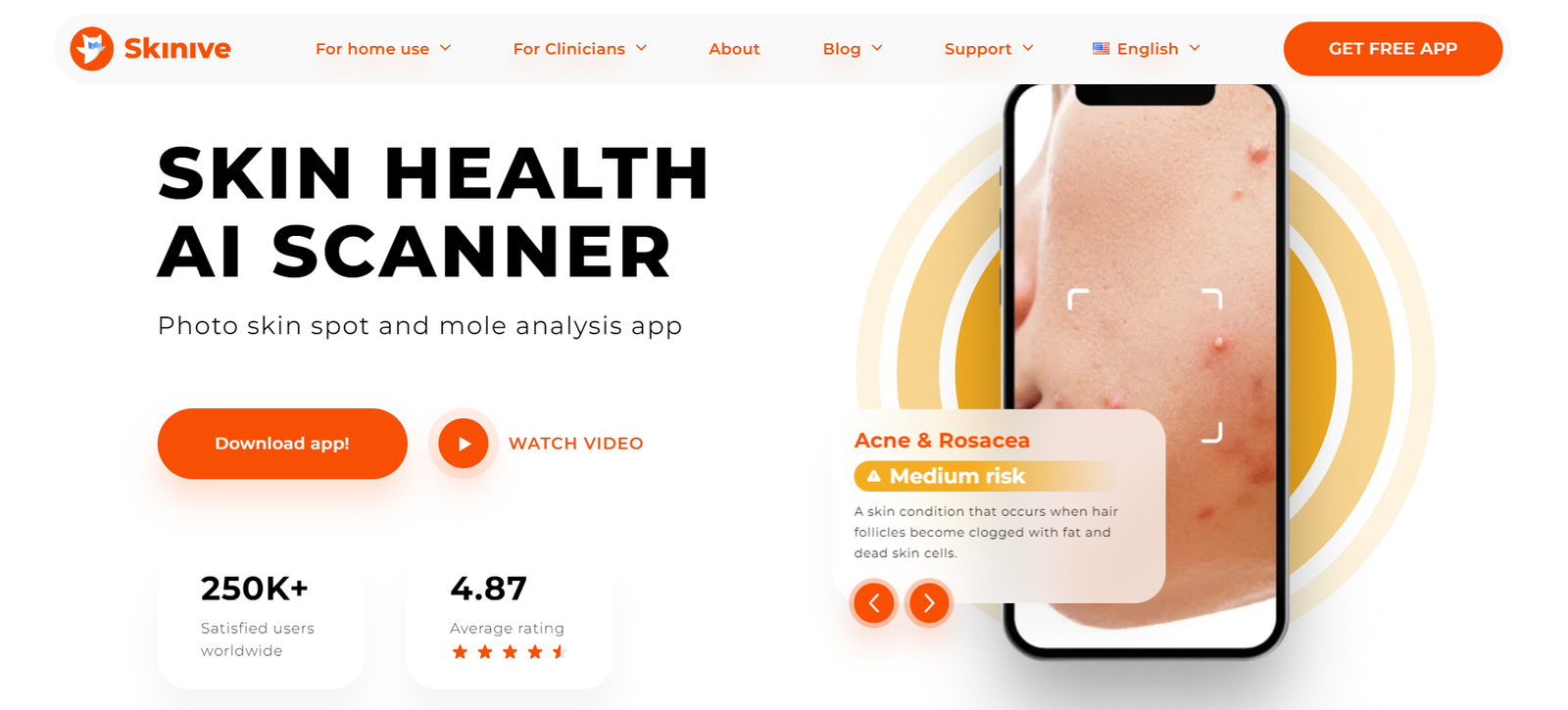 Skinive is an advanced AI-powered tool designed to analyze skin conditions through photo scans. With over 250,000 satisfied users worldwide, Skinive’s apps are CE-Marked medical software trusted by dermatologists and used by individuals at home and professionals in primary care settings. This innovative solution helps users monitor and manage their skin health effectively, providing insights and recommendations for various skin issues.