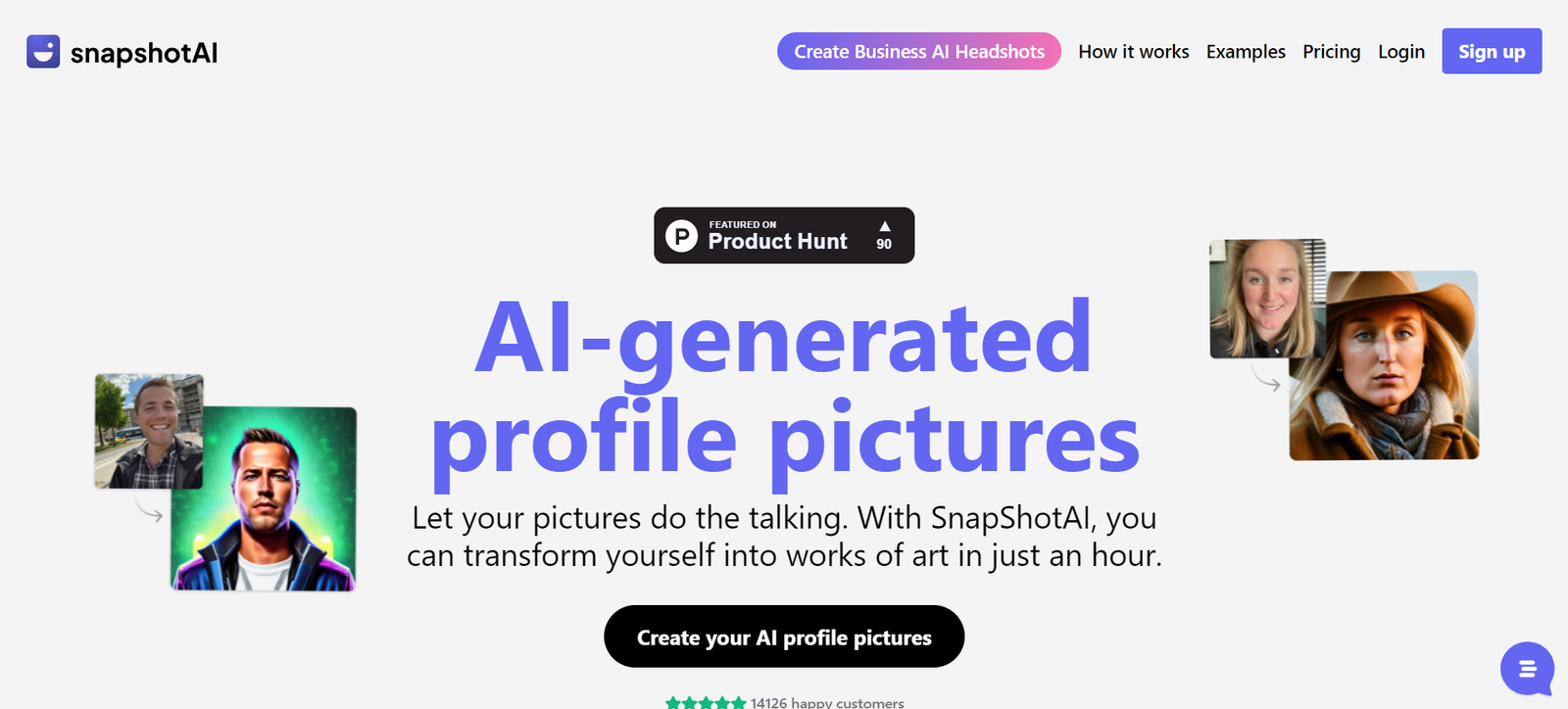SnapshotAI is a tool designed to create AI-generated images, profile pictures, and avatars. With over 14,000 happy customers, it allows users to transform their photos into artistic creations in just an hour. The process involves uploading selfies, training a personalized AI model, and receiving over 200 profile pictures in various styles.