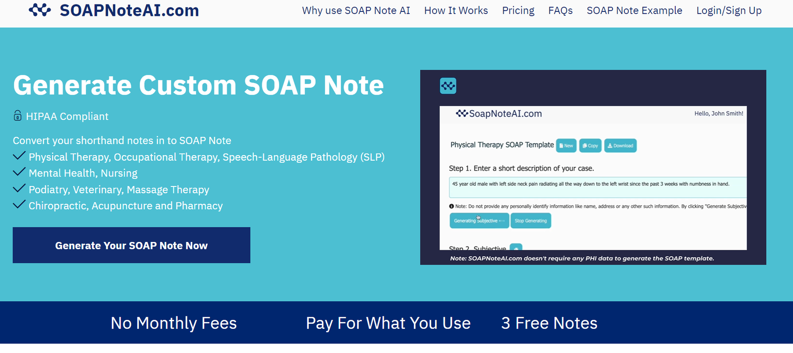SOAPNoteAI is an advanced tool designed to streamline the process of generating SOAP notes, which are essential for documenting patient encounters in various healthcare settings. This tool leverages artificial intelligence to create accurate and comprehensive notes quickly, thus saving healthcare providers a significant amount of time. By utilizing SOAPNoteAI, users can ensure their documentation is precise, compliant with industry standards, and ready for download in just a few steps.