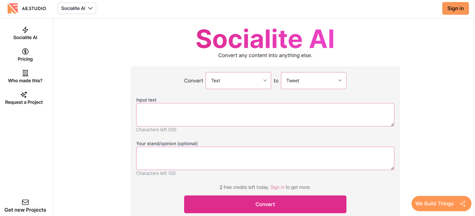 Socialite AI is an innovative AI-powered tool designed to transform various types of content into different formats. Whether it’s converting text to video, images, or other media types, Socialite AI leverages advanced algorithms to streamline the content transformation process. This tool is particularly useful for content creators, marketers, and businesses looking to repurpose their existing content efficiently.