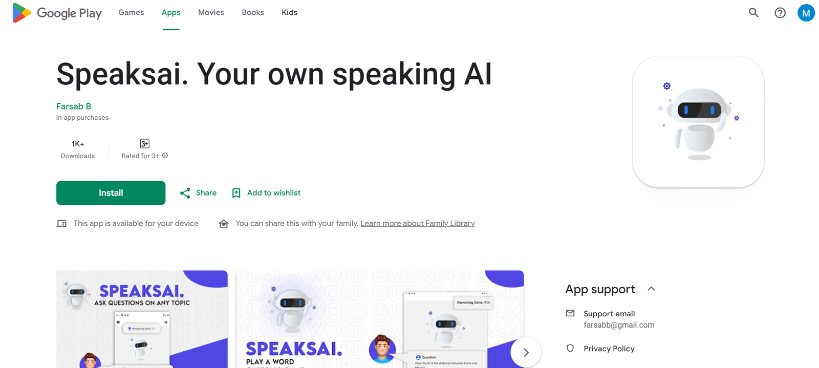 Speaksai is a personal AI companion app that leverages artificial intelligence and natural language processing to provide instant answers to user queries through a simple voice interface. Users can ask questions using their voice and receive context-aware responses, making it a friendly conversation buddy.